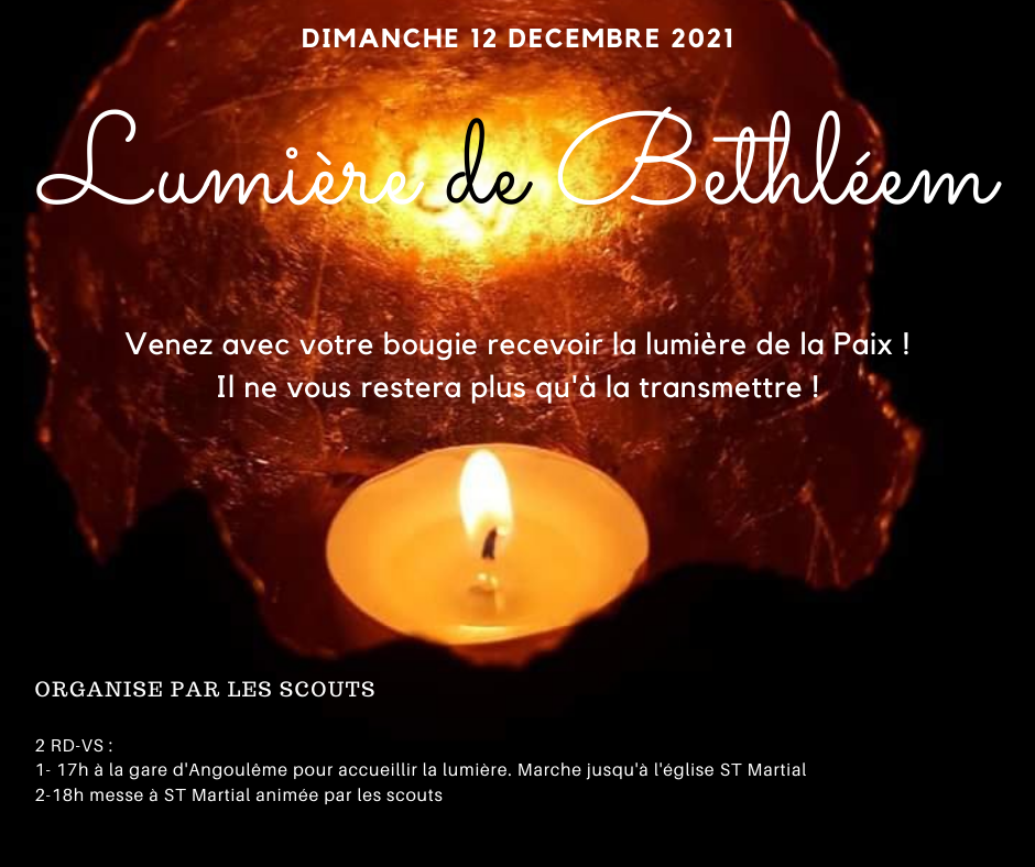 La Lumière de Bethléem, appelée aussi Lumière de la Paix, est arrivée à la gare d’Angoulême le dimanche 12 décembre. Une procession a mené la lumière jusqu’à l’église Saint Martial où la messe a été célébrée.