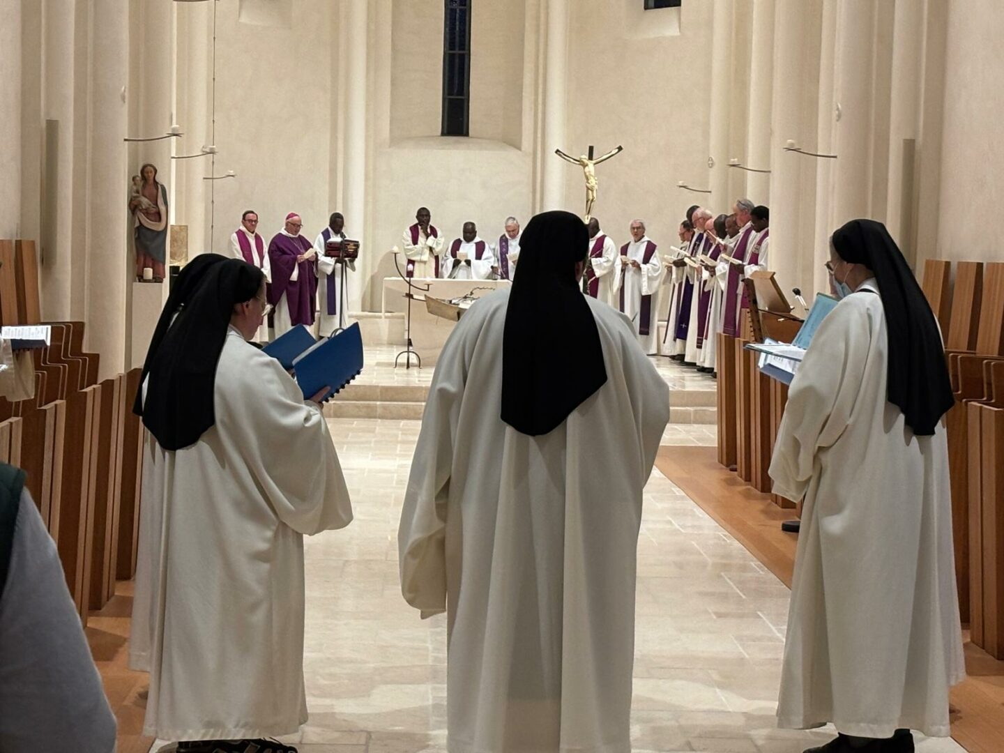 Près de 25 prêtres du diocèse d’Angoulême et Mgr Gosselin se sont retirés 48h dans une abbaye cistercienne pour y être enseignés par une abbesse bénédictine. De fait, c’est à l’école de Saint Benoît et dans un commentaire éclairant et profond que Mère Thérèse a guidé les échanges et la prière des prêtres venus se ressourcer.