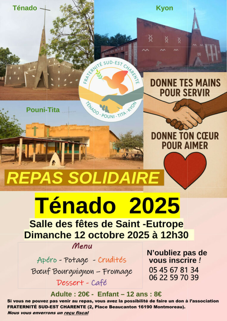 Bonjour cher(e)s ami(e)s, Comme chaque année nous organisons le repas de la fraternité de Ténado. Vous êtes cordialement invité(e)s à…