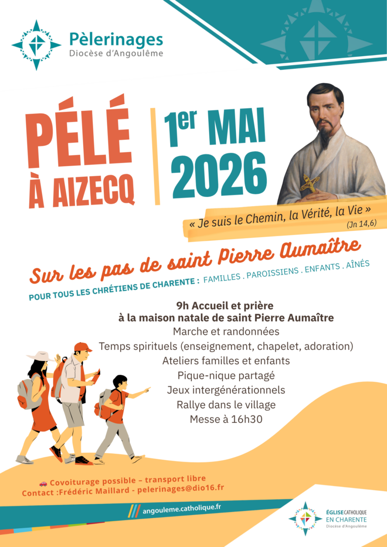Le diocèse d’Angoulême invite tous les chrétiens de Charente, familles, paroissiens, jeunes et aînés, à vivre une grande journée de pèlerinage diocésain le vendredi 1er mai 2026 à Aizecq, village natal de saint Pierre Aumaître.
