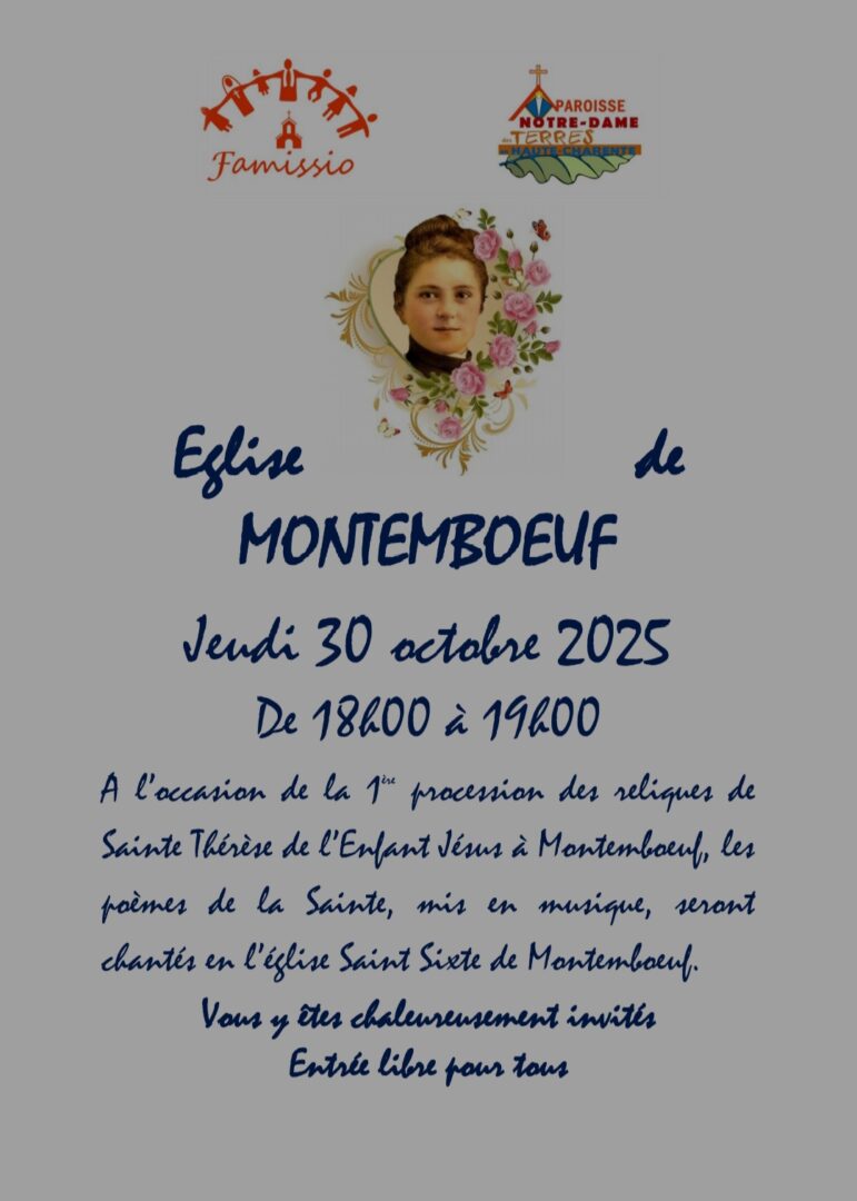 CONTACT : Paroisse Notre Dame des Terres en Haute Charente 16 place de l’église 16260 CHASSENEUIL-SUR-BONNIEURE