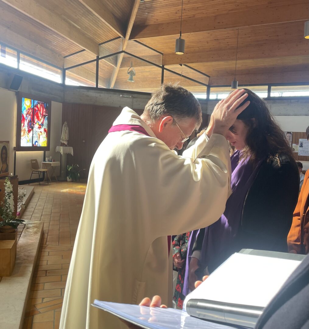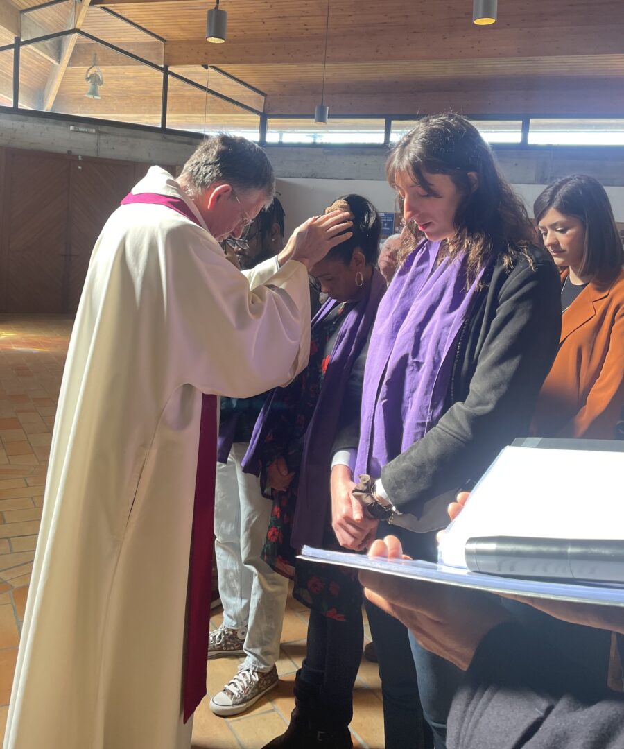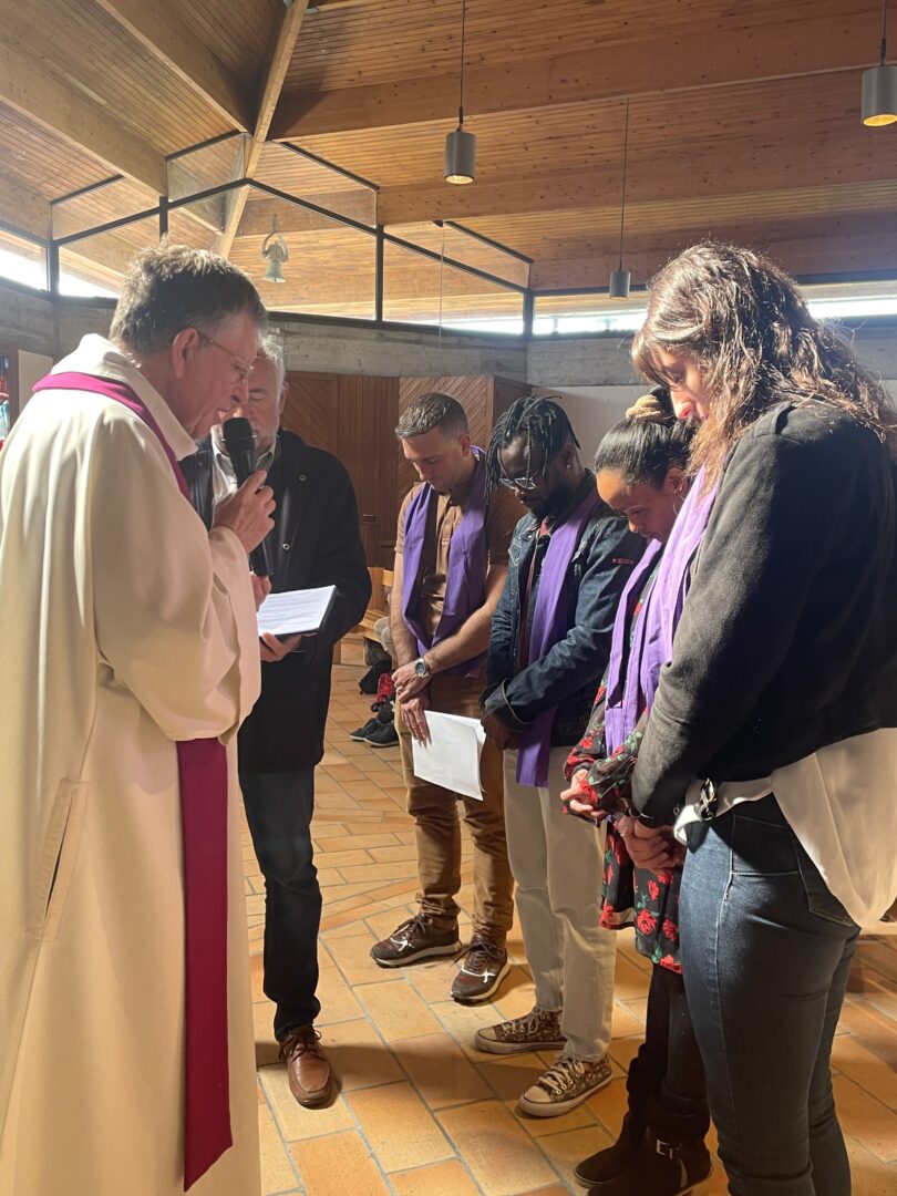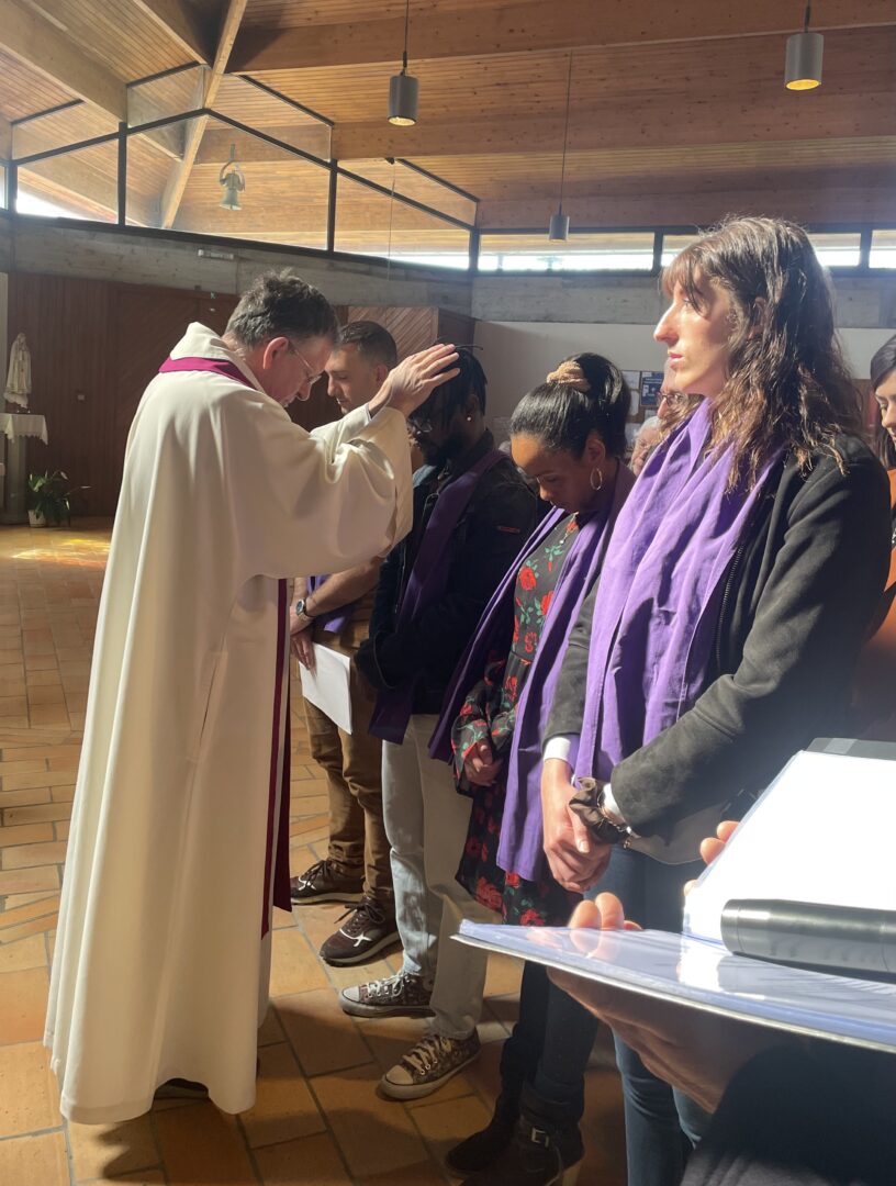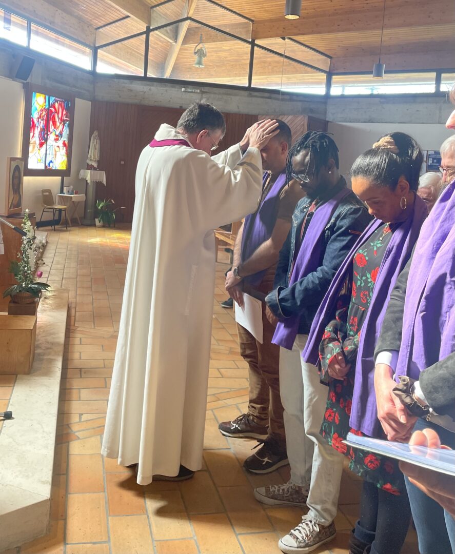Renaud, Emmanuel, Margaux, Francia, vous voici arrivés à la dernière étape avant le Baptême. Magnifique ! Toute la Communauté est avec vous et se réjouit. Nous sommes dans cette Communion, cette joie de savoir que vous allez être plongés dans cet Amour sans limite de Dieu, dans cette Vie qui veut vraiment se saisir de votre cœur pour vous amener à la Joie totale.