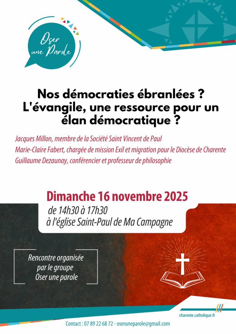 Le groupe Oser une parole propose une nouvelle rencontre pour réfléchir ensemble à la vitalité de nos démocraties à la lumière de l’Évangile.
