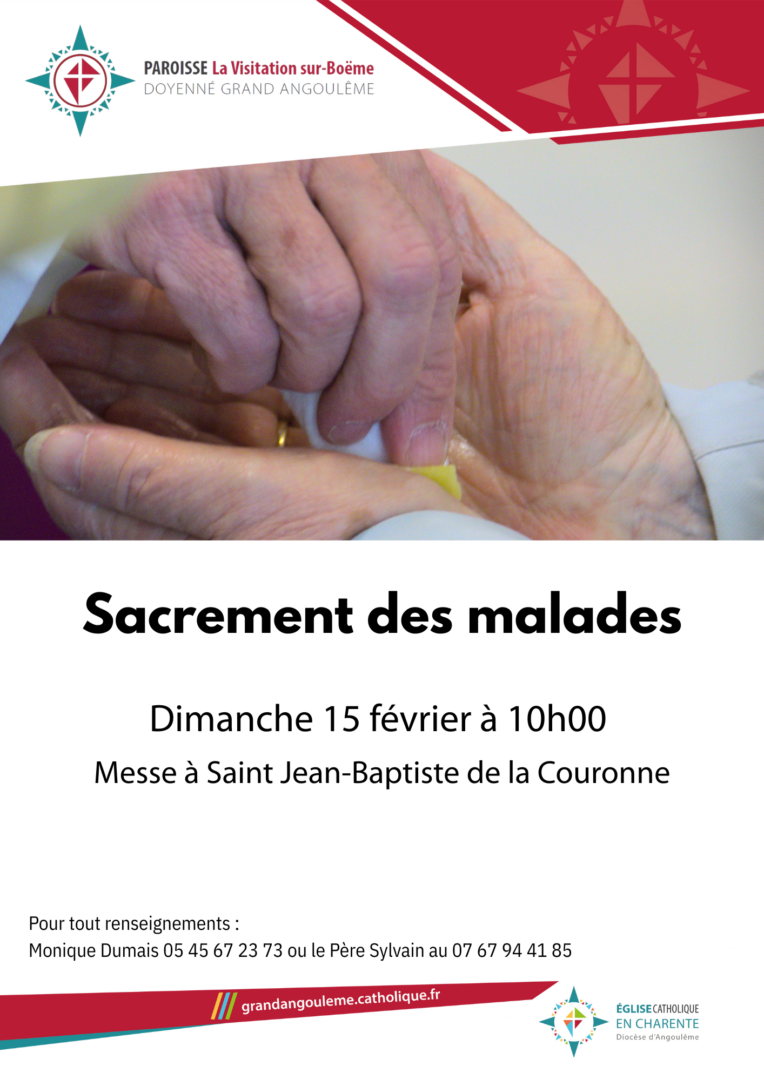 Si vous souhaitez recevoir le sacrement des malades, au cours de la messe du dimanche 15 février à 10h dans l’église St Jean-Baptiste de la Couronne.