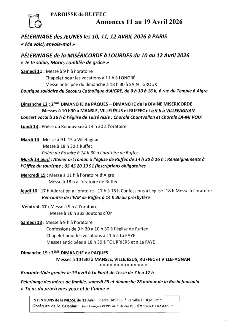 Annonces du 11 au 19 avril 2026