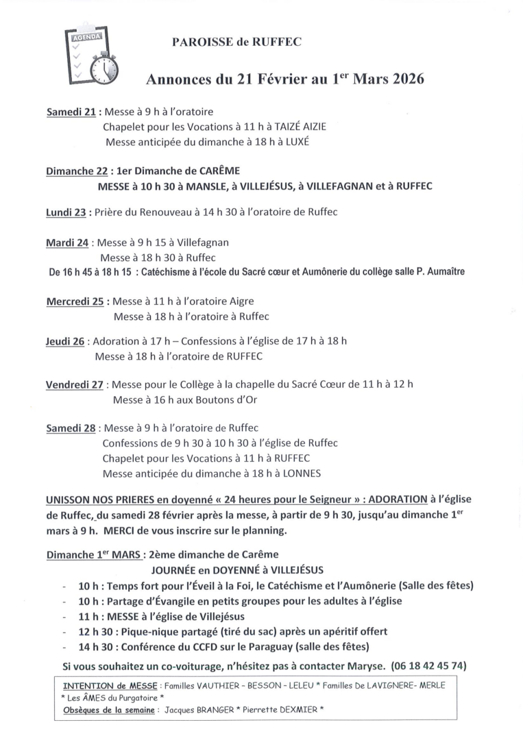 Annonces du 21 février au 1er mars 2026
