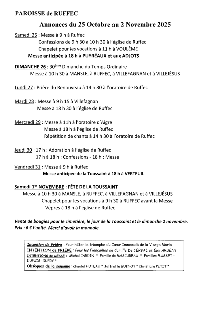 Annonces du 25 octobre au 2 novembre 2025