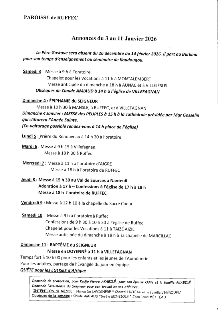 Annonces du 3 au 11 janvier 2026