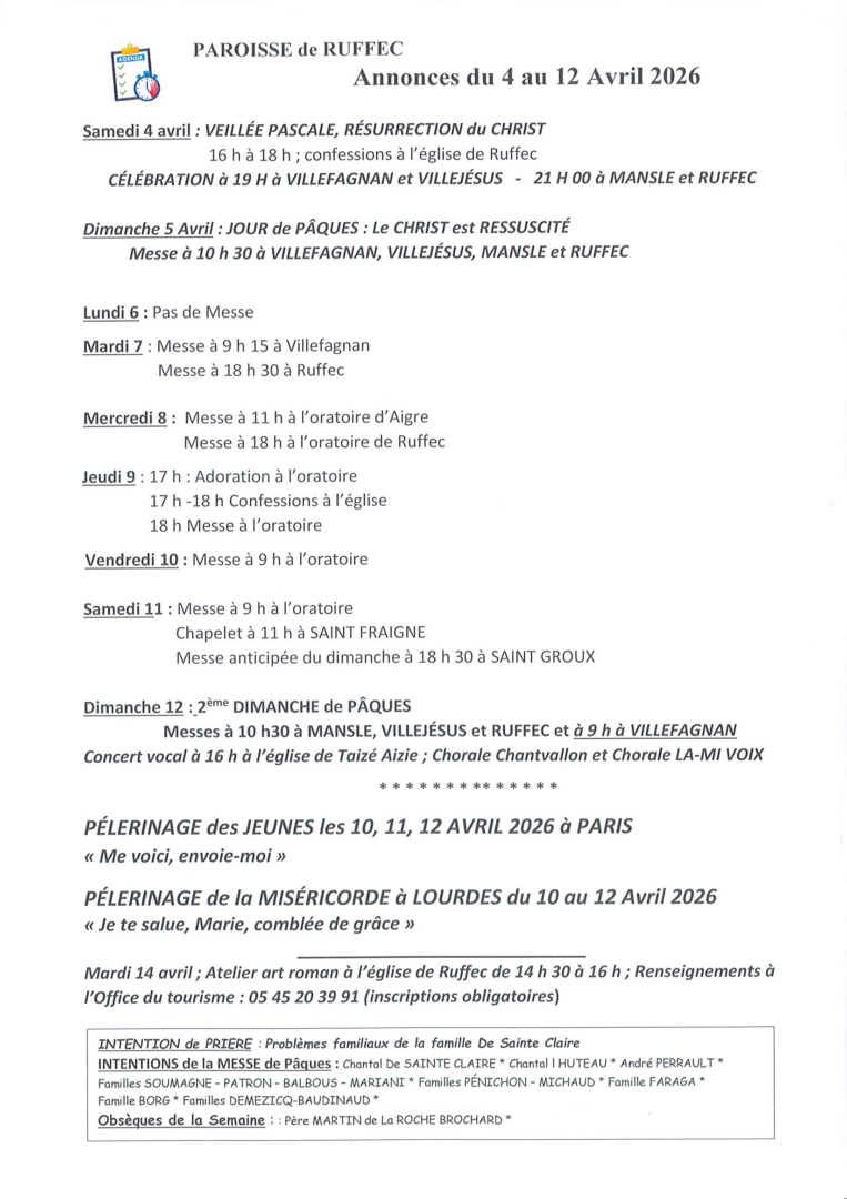 Annonces du 4 au 12 avril 2026