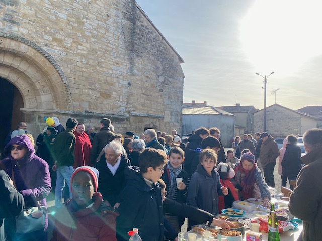 La matinée s’est achevée sur le parvis, par un moment convivial, avant que chacun et chacune reparte fortifié(e), de la grâce reçue par son baptême!!!