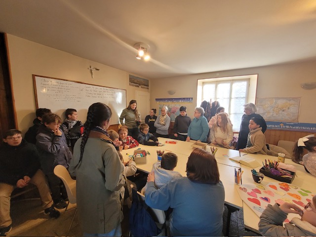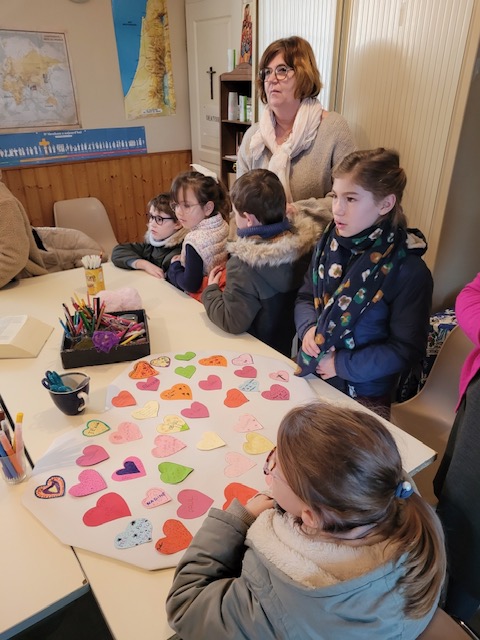 Cette parole s’est concrétisée sous la forme d’un cœur porté par les enfants en procession d’entrée puis collé sur une grande croix !