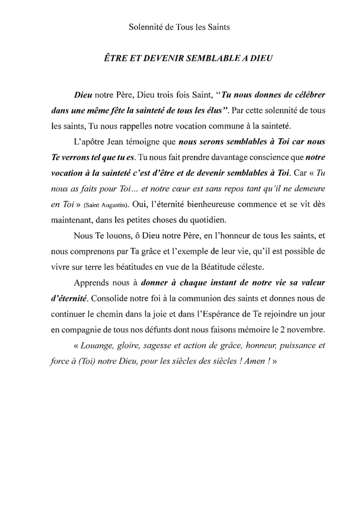 ETRE ET DEVENIR SEMBLABLE A DIEU