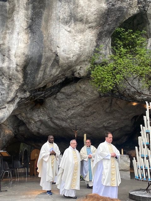 Puis le ton est vite donné dès notre passage à la grotte pour confier nos prières à Marie, puis conférences et messe d’ouverture se succèdent.