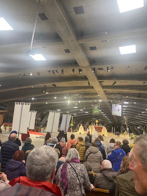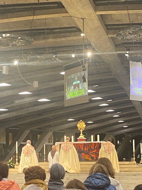 Dernier jour de pèlerinage : messe internationale à la basilique Saint Pie X et célébration d’envoi à la chapelle St Joseph où chacun s’est retrouvé en petits groupes pour partager ce qui l’a profondément touché pendant ces 3 journées. Temps d’adoration, procession mariale , messe veillée …Tout y était précieux !