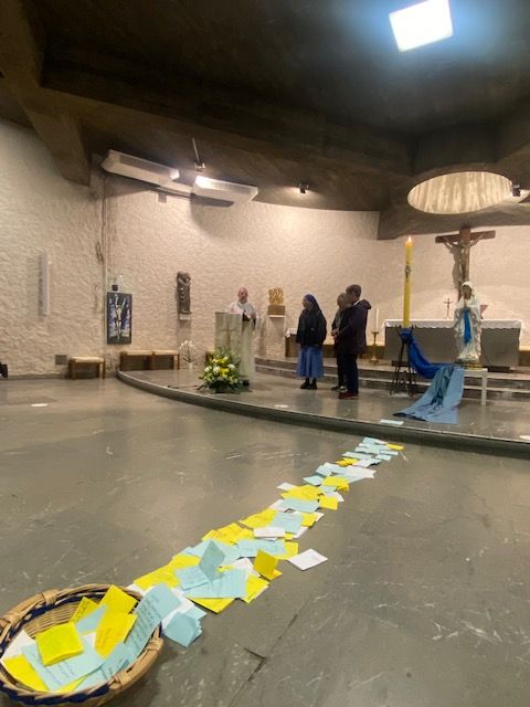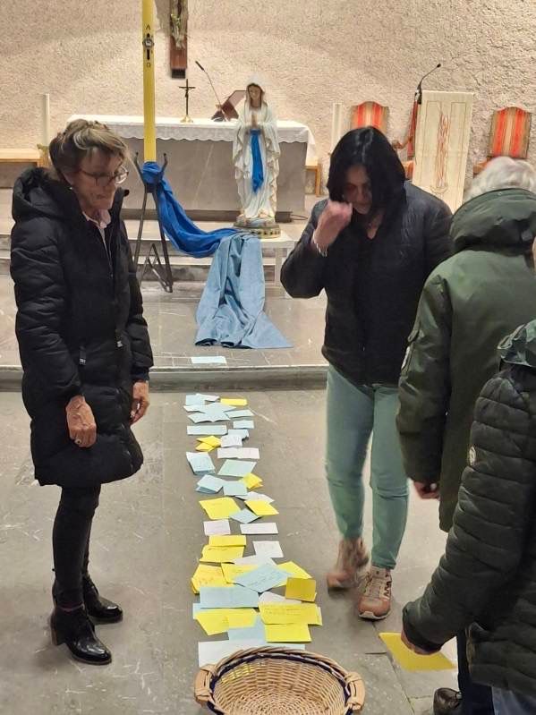 L’après-midi a commencé par un chemin de croix, puis s’est prolongée par un temps d’Adoration à la basilique souterraine, avant de s’achever par une veillée à la chapelle Saint-Joseph. Chacun a pu y déposer ses intentions de prière aux pieds de Marie, en empruntant un chemin qui conduit à Jésus par notre Sainte Mère