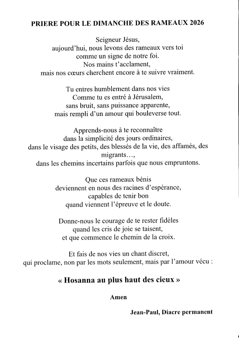 Priere pour le dimanche des Rameaux