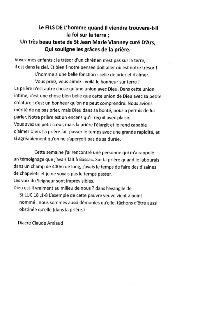 Texte du curé d’Ars (proposé par Claude Amiaud)
