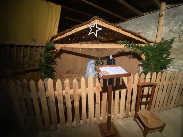 Une crèche visible depuis la rue, ouverte chaque jour de 10h à 18h dans l’ancien garage du presbytère.(face à l’église de Villefagnan)