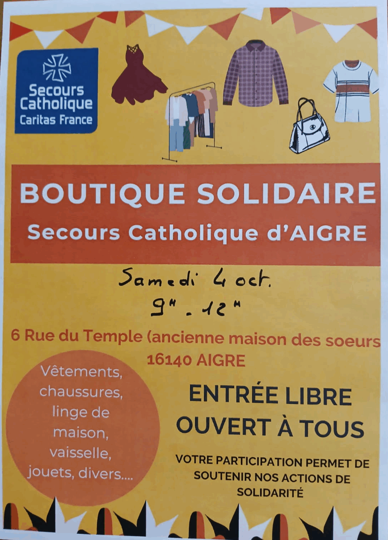 Paroisse d'Aigre 6 Rue du Temple, 16140 Aigre Permanence physique au 6 rue du Temple à Aigre le mercredi de 10h à 12h. Permanence téléphonique permanente : 07 45 14 47 47. Messe à l'oratoire de la maison paroissiale le mercredi à 11h. paroisse.aigre16@outlook.fr