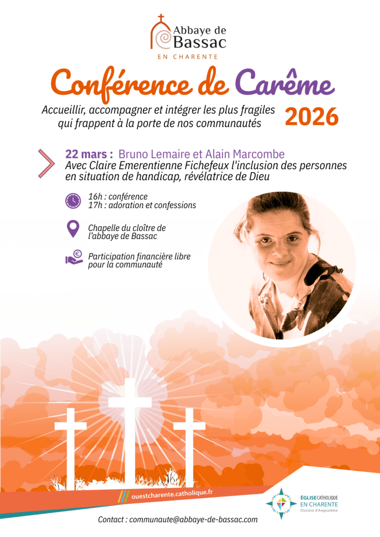 Horaires : 16h : conférence suivie d’un temps d’échange / 17h : adoration eucharistique et confessions