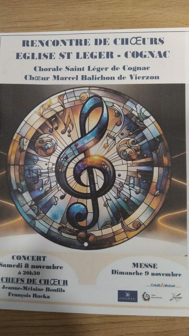 Rencontre de choeurs St-Martin en val de cognac Partager Sur FacebookSur TwitterSur LinkedinSur WhatsappPar Email 08novembre Diocèse d'Angoulême Ouest Charente St-Martin en val de cognac Agenda Partagez cette page à vos amis ! Télécharger au format PDFInformations église St Léger Église Saint-Léger de Cognac, Rue Aristide Briand, Cognac, France samedi 08 novembre de 20h30 à 22h00 Voir le site de la paroisseContact Paroisse Saint Martin en Val de Cognac 10 Rue Monseigneur Lacroix, 16100 Cognac 05 45 82 05 71 ou 07 50 75 95 81 paroisse.cognac@dio16.fr