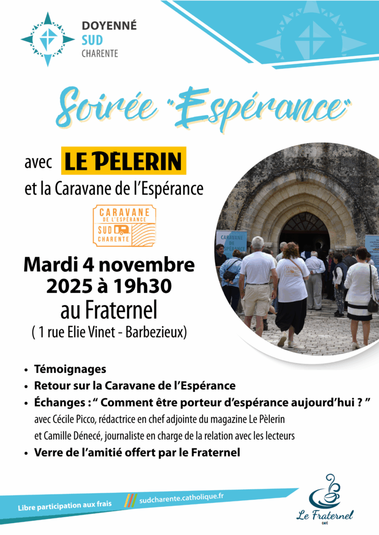 Le mardi 4 novembre 2025 à 19h30, venez parler de l’Espérance avec le journal Le Pèlerin et la Caravane de l’Espérance vécue en mai-juin 2025 !