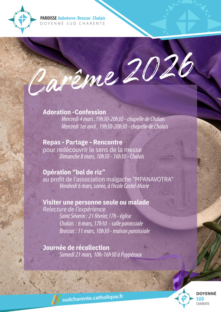 - Une journée de récollection en doyenné : le samedi 21 mars à Puypéroux de 10h à 16h30. Détails à venir !